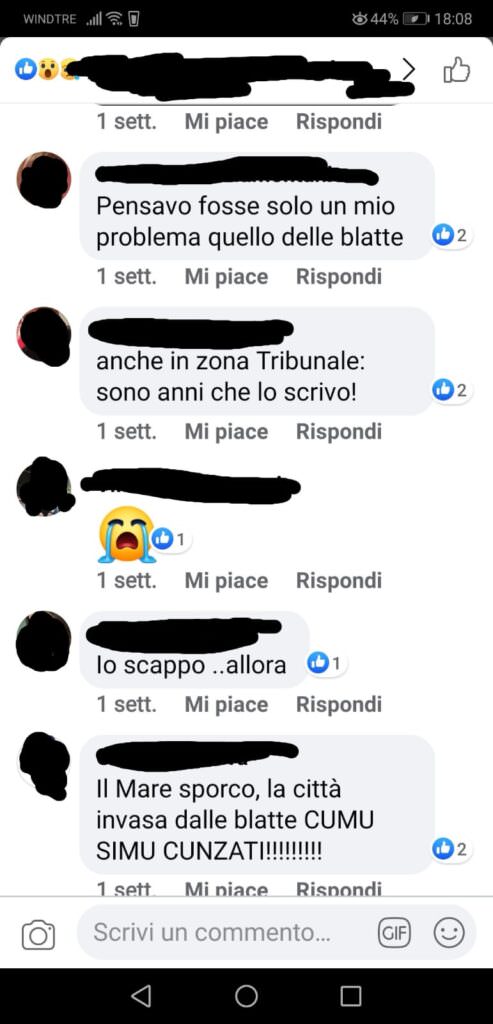 re. Siamo a rischio infezioni. Se entrano nei locali o nei punti vendita alimentari è la fine», «Questa sera sul corso passeggiavano blatte e topi».