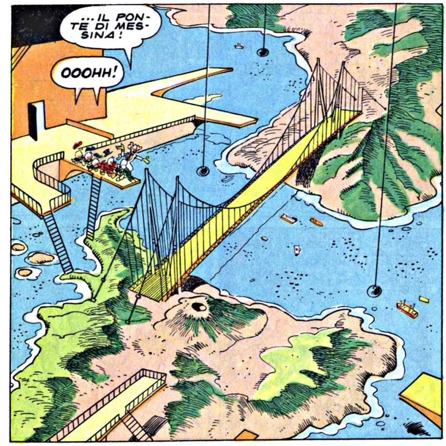 Cecilio Metello ci aveva provato a unire lo Stretto, con le botti legate a due a due, Carlo Magno il ponte lo voleva galleggiante, e Paperon de Paperoni aveva presentato il progetto di collegamento tra Sicilia e Calabria in un fantastico numero speciale del famoso “Topolino”. È lunga la storia del “ponte che non c’è”: storia visionaria, di leggende, illusioni ottiche, come la Fata Morgana, di volontà morettiane di farlo e non farlo. Di ipocrisie politiche, di calcoli egoistici del Nord (ci conviene o non ci conviene). Ma è ora di chiuderla per sempre, questa storia diventata metafora del Paese delle mille promesse non mantenute, riguardo soprattutto al Sud.
