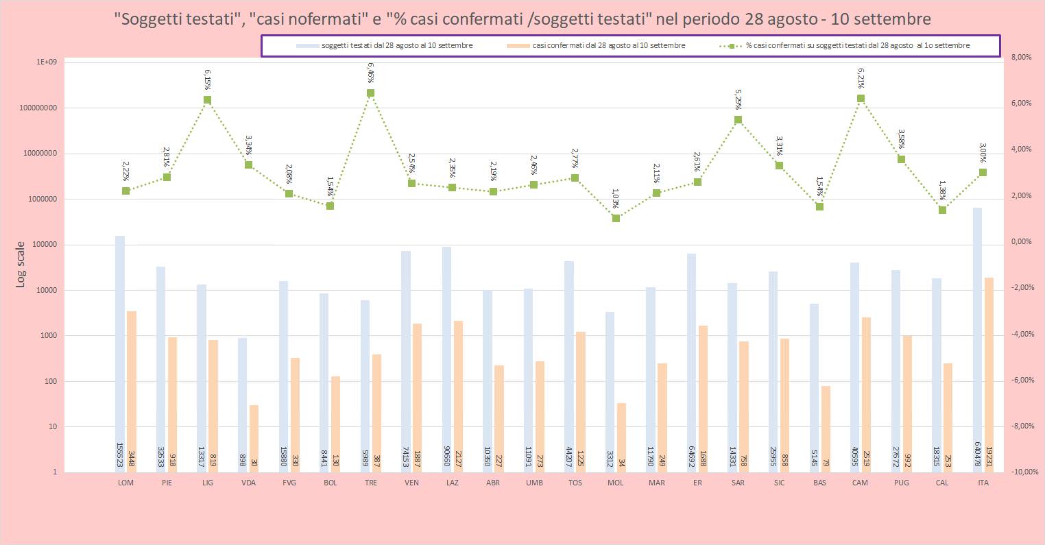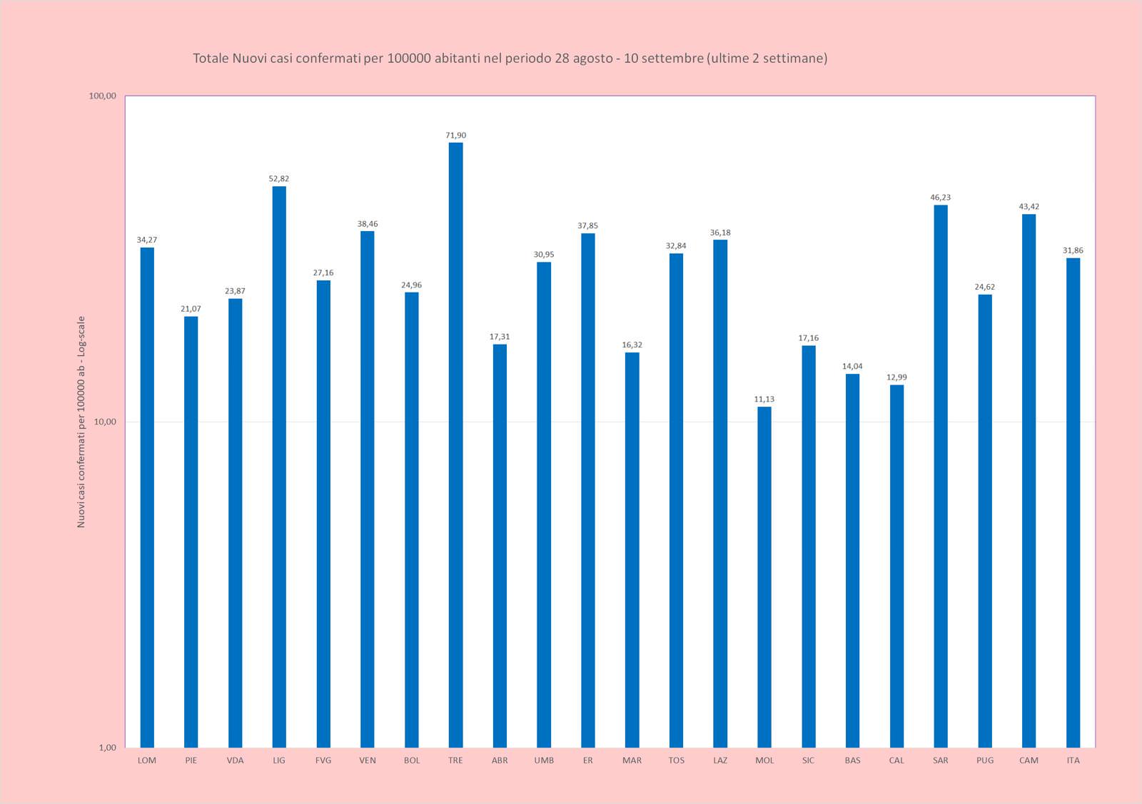 Il dato dei casi confermati su 100mila abitanti e quello della percentuale di positivi sui soggetti testati sono incoraggianti sull’evoluzione della pandemia nella regione