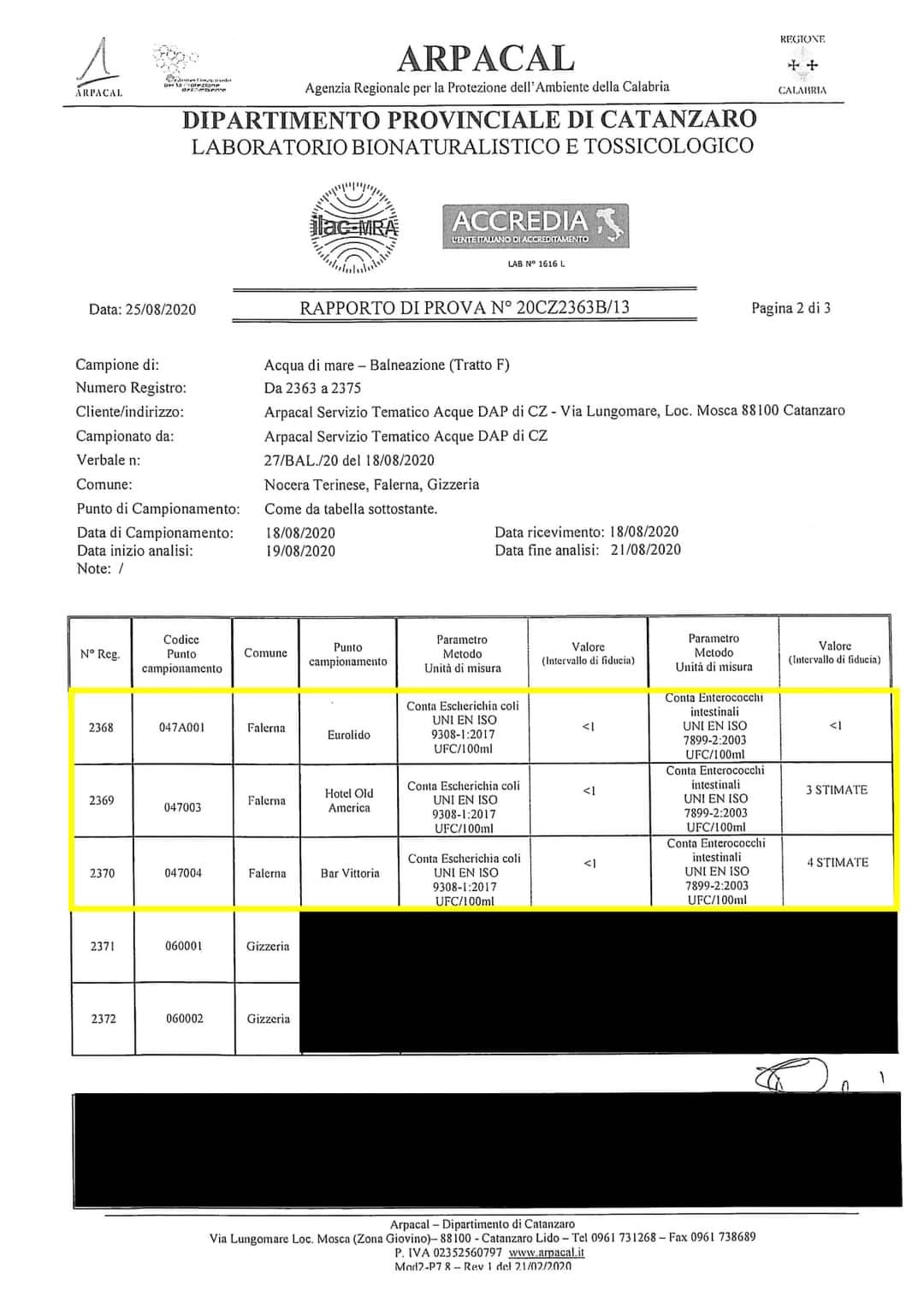 «Nella comunicazione dell’ArpaCal, è evidenziato che i tecnici intervenuti sul posto hanno prelevato l’acqua interessata dal fenomeno in parola in data 18 agosto 2020, come riportato nella nota dall’Agenzia Regionale: “Si precisa che nel tratto Nocera – Gizzeria – Falerna sono stati prelevati dei campioni di acqua contenente delle chiazze di colore giallo-marrone”. Il medesimo prelievo è stato effettuato, su nostra richiesta, in data 31 agosto nel tratto di costa antistante lo stabilimento balneare “Lido il Pirata” (punto di Prelievo Arpacal denominato “Bar Vittoria” come riportato sul portale del Ministero Della Salute), le analisi evidenziano l’assenza totale di scarichi fognari sia nei prelievi del 18 che del 31 agosto 2020 come riportato nei documenti ufficiali che alleghiamo al presente comunicato. Ulteriori prelievi che certificano l’assoluta assenza di scarichi fognari, e qualificano come “eccellenti” le acque del litorale falernese, erano già stati effettuati nelle seguenti date: 21/07/2020, 23/06/2020, 26/05/2020, tutti i risultati sono pubblicati sul sito del Ministero della Salute ( http://www.portaleacque.salute.gov.it )», segnala l’amministrazione, la quale ha deciso di dichiarare guerra a coloro che hanno protestato mettendosi «a fianco di tutti gli operatori turistici che riterranno necessario avviare azione risarcitoria per il danno ricevuto dalla diffusione di informazioni infondate».
