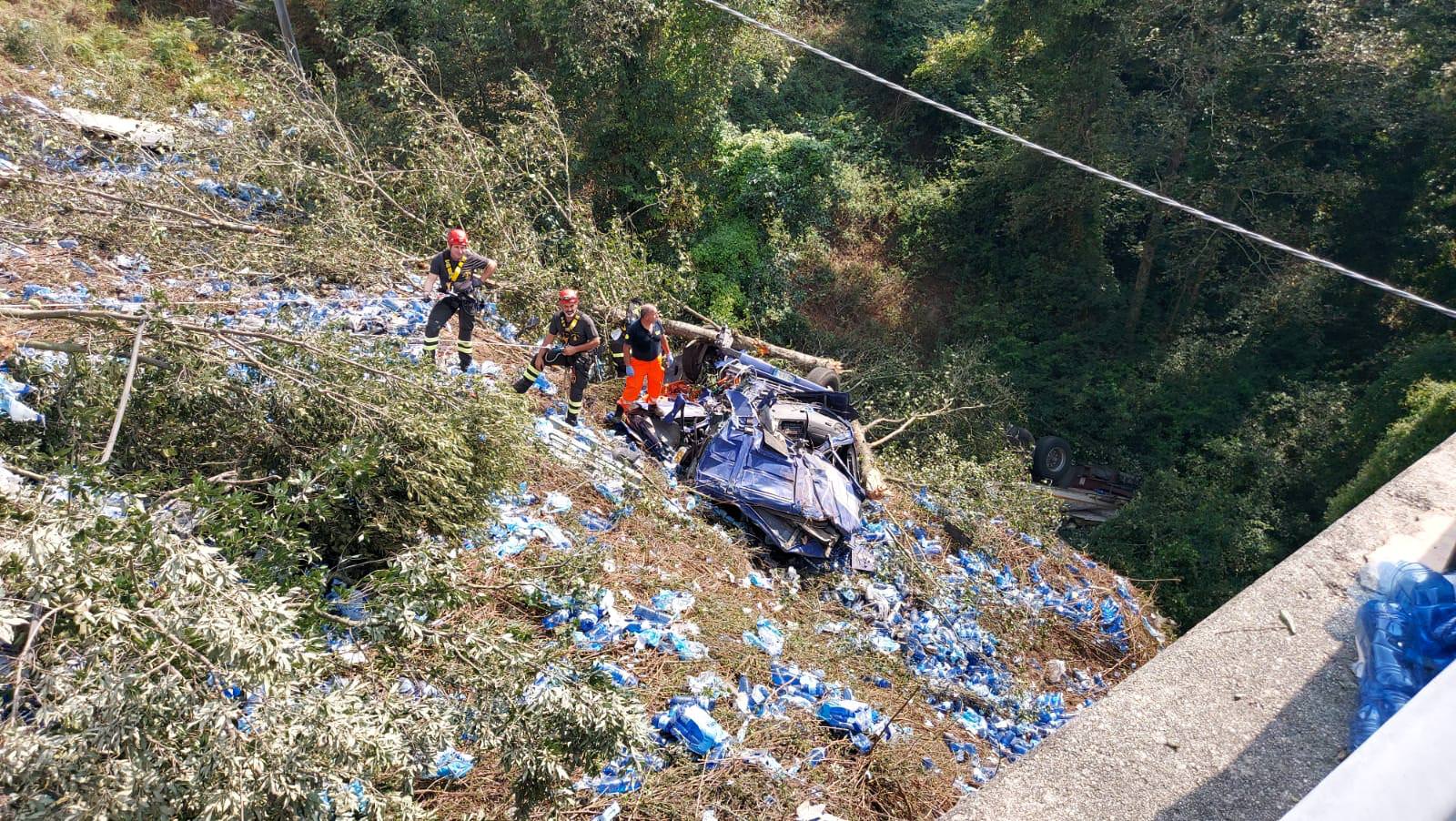 Mezzo pesante precipita in una scarpata, morto il conducente – FOTO E VIDEO