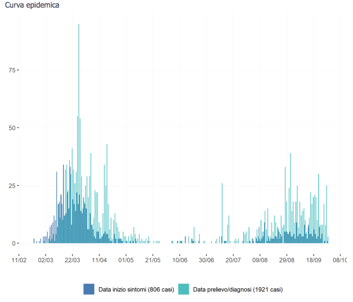 I 3.266 FOCOLAI, 14 NELLE SCUOLE Sono stati riportati complessivamente 3.266 focolai attivi, di cui 909 nuovi, entrambi in aumento per la nona settimana consecutiva (nella precedente settimana di monitoraggio erano stati segnalati 2.868 focolai attivi di cui 832 nuovi). Questa settimana sono stati segnalati anche 14 focolai in cui la trasmissione potrebbe essere avvenuta in ambito scolastico, anche se attualmente non è sempre confermata. Nelle prossime settimane si potrà meglio valutare l’impatto dei contagi nelle scuole. È quanto evidenzia il consueto monitoraggio settimanale del ministero della Salute e Istituto superiore di sanità, relativo alla settimana 21-27 settembre.