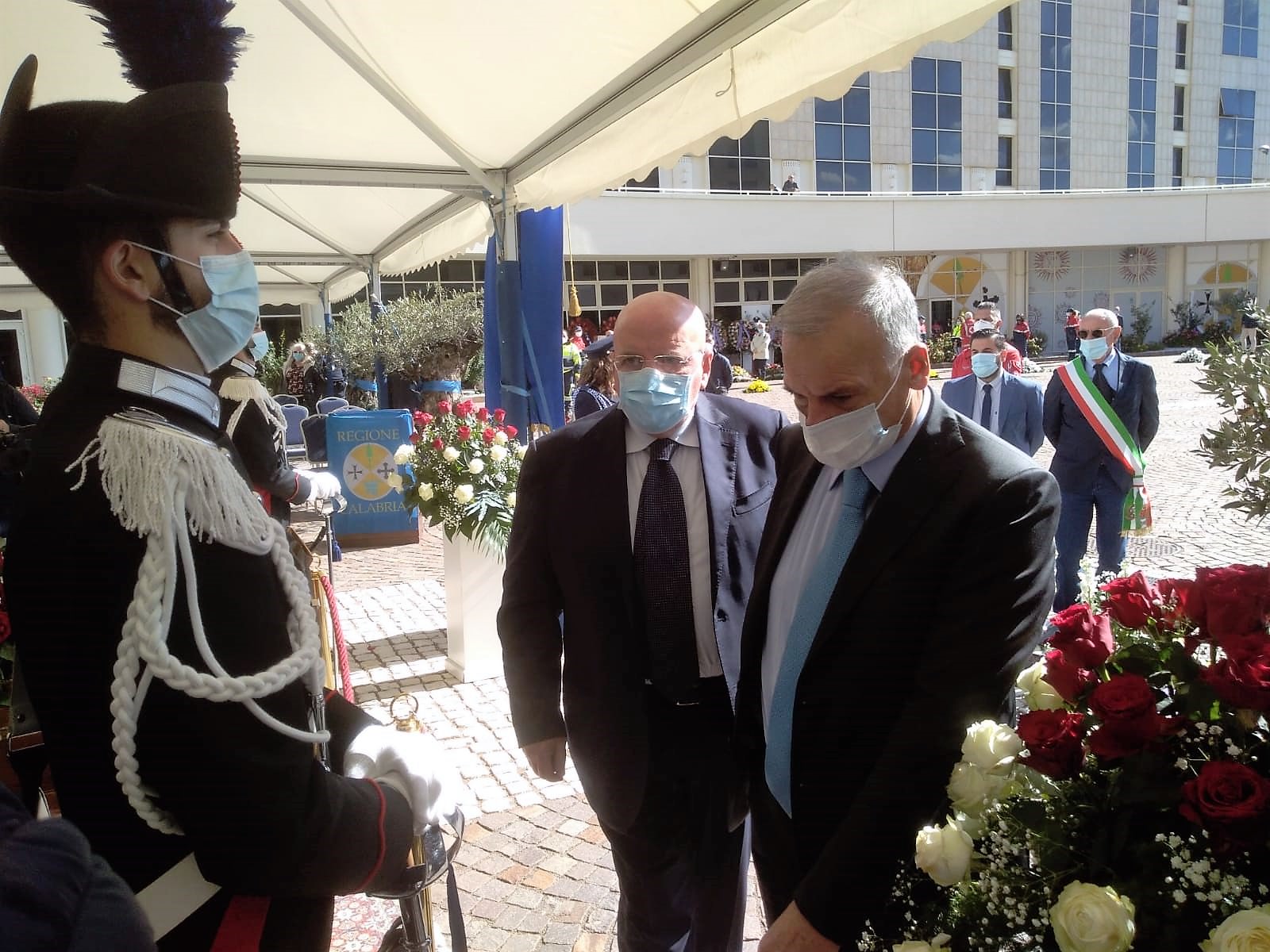 A testimonianza di un omaggio che è istituzionale e comunitario gli stendardi della Regione Campania, delle provincie calabresi e poi molti sindaci che hanno reso omaggio sostando davanti al feretro con la fascia tricolore. La chiusura è anticipata alle ore 13.30. Subito dopo, il presidente della Cec e arcivescovo di Catanzaro-Squillace, mons. Vincenzo Bertolone, benedirà la salma della presidente Santelli. Dopo la cremazione del corpo che avverrà a Carpanzano, l’urna con le ceneri riposerà nella cappella di famiglia, assieme a quelle dei genitori, nel cimitero di Malito, nel Cosentino. (a.c.)L’ex presidente Mario Oliverio insieme a Domenico TalliniMichele Emiliano, presidente della Regione PugliaDelegazione dei sindaci calabresiWanda Ferro