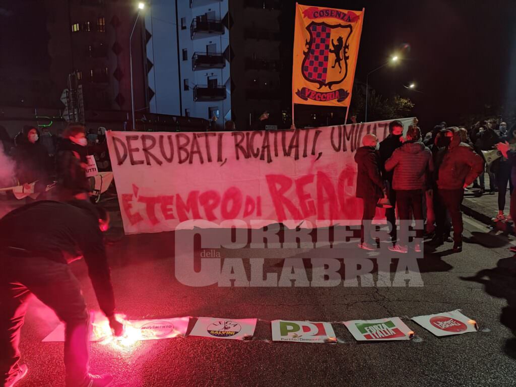 COSENZA La città si riversa in piazza. Dopo la mobilitazione della settimana scorsa un centinaio di cosentini sono in presidio permanente alla rotonda che consente l’accesso allo svincolo autostradale di Cosenza Nord. Folto lo schieramento di forze dell’ordine schierate in tenuta anti sommossa al fine di evitare l’accesso del corteo alle corsie autostradali. «Sappiamo che il virus esiste e vogliamo una sanità che ci faccia vivere tranquilli. Questo manca ai calabresi per 30 anni di latrocinio nella sanità calabrese – dicono i manifestanti -. Ci troviamo in questa situazione a causa del blocco del turnover e della chiusura di ospedali di cui chiediamo l’immediata riapertura. E poi una medicina di prossimità che funzioni e ambulatori di quartieri». La principale preoccupazione è «questo lockdown, che potrebbe definitivamente produrre la fine di questa terra. Possiamo solo costruire le basi di una inversione di tendenza. Dobbiamo togliere di mezzo i politici che ci hanno ridotto in questa situazione. Serve una risposta forte. Solo noi possiamo dare questo segnale». A circa 20 minuti dall’inizio della manifestazione, le forze dell’ordine hanno accennato a un carica. Quando il presidio si trovata nei pressi dello svincolo sono state esplose quattro bombe carta, poi i manifestanti si sono spostati verso il centro cittadino, dove hanno raggiunto la sede dell’Azienda sanitaria provinciale.