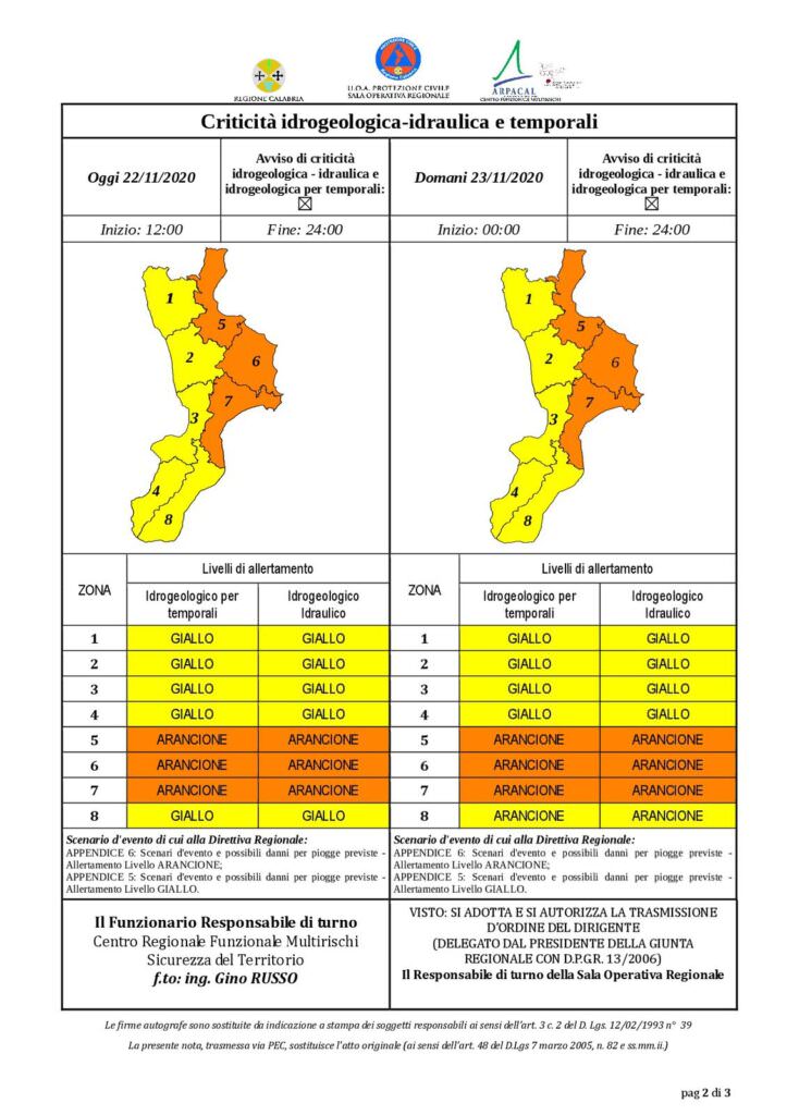 Già ieri il dipartimento della Protezione civile aveva emesso un nuovo allertamento che estende le possibili aree che potrebbero essere colpite anche oggi. In particolare le zone interessate da eventi avversi riguardano sempre la fascia ionica crotonese e cosentina ma anche quella catanzarese. Mentre per le altre zone il livello sale a fascia arancione.