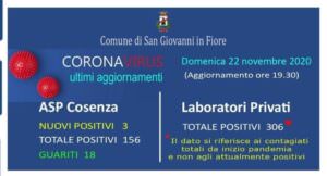 Tra dubbi e contagi in crescita tra i sanitari, a San Giovanni in Fiore temono l’isolamento. E anche i bollettini diffusi periodicamente dal Comune. L’ultimo di cui si ha traccia, un aggiornamento di domenica 22 novembre, riporta una doppia cifra. La prima riferita ai contagi registrati dall’Asp di Cosenza (che sono gli unici ufficiali): 3 nuovi positivi, per un totale di 156 infetti e 18 guariti. La seconda offre invece il numero dei totali positivi registrati dai laboratori privati: 306, una cifra molto più elevata, che farebbe – se confermata ufficialmente – aumentare l’incidenza del contagio in maniera preoccupante. L’amministrazione specifica che «il dato si riferisce ai contagiati totali da inizio pandemia e non agli attualmente positivi», ma la preoccupazione resta. E l’inverno è alle porte.