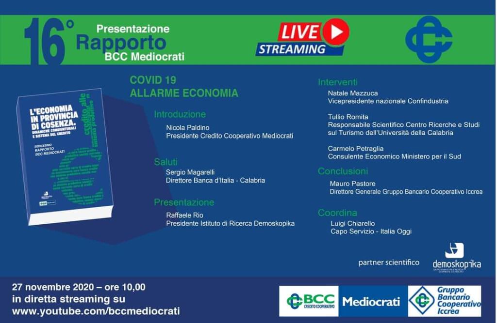 Giunto alla sua sedicesima edizione, a causa delle restrizioni dovute alla pandemia da Covid-19 il Rapporto sarà presentato in streaming video sulla pagina Youtube della BCC Mediocrati.