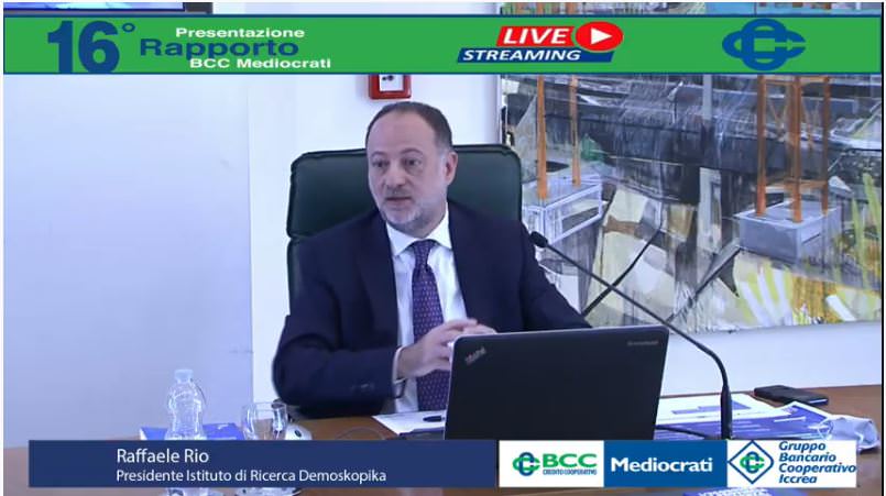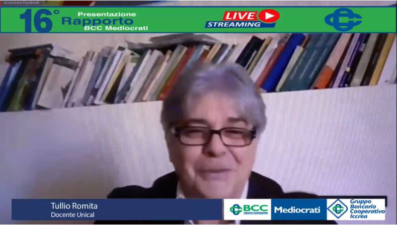 COSENZA È stato presentato stamattina (venerdì 27 novembre) alle 10 l’annuale Rapporto BCC Mediocrati sull’economia cosentina. Per l’emergenza sanitaria in corso che ha portato alle restrizioni, la sedicesima edizione del report – realizzato dall’istituto Demoskopika per conto della Banca di credito cooperativo “Mediocrati” – è stato illustrato in diretta streaming sulla pagina della Bcc. Al centro del Focus di quest’anno, non poteva esserci la Pandemia e i suoi effetti sul sistema economico cosentino e calabrese. I lavori, sono stati coordinati da Luigi Chiarello capo servizio di Italia Oggi e introdotti dal presidente Credito cooperativo Mediocrati, Nicola Paldino che ha iniziato il suo intervento sottolineando «le stranezze che sta vivendo la Calabria in questa fase».