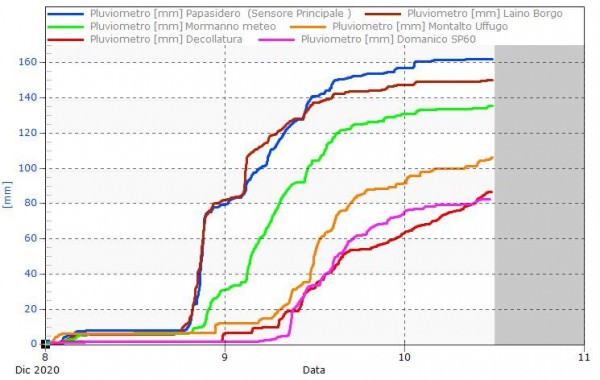Di seguito si riportano i grafici delle precipitazioni significative registrate al 10/12/2020.