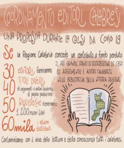 L’appello che parte da circa 30 editori in tutta la regione «è una proposta per ricevere un sostegno economico, ma non a fondo perduto, bensì per la realizzazione di un “grande piano” per la fornitura di libri calabresi alle biblioteche della Regione, che ormai da decenni non vengono più rifornite di testi editi dagli editori calabresi. Le biblioteche a loro volta potranno organizzare iniziative (con la collaborazione degli editori) sul loro territorio per la promozione della lettura e la conoscenza della nostra cultura». Nel dettaglio, a fronte di un contributo gli editori che partecipano al piano, si impegnano a consegnare presso gli uffici regionali 40 titoli di libri di argomento o di autori calabresi (volumi che hanno un prezzo di copertina superiore a 9,90 euro), che verranno consegnate a 50 biblioteche presenti sul territorio; ogni editore fornirà 2.000 volumi (il totale di libri messi a disposizione di tutti i calabresi saranno ben 60 mila volumi). Le 50 biblioteche scelte dalla Regione Calabria al termine dell’operazione riceveranno 1.200 nuovi libri.