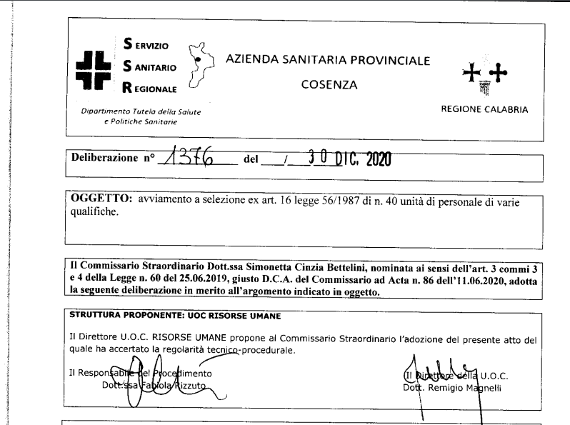 La delibera numero 1376 del 30 dicembre scorso «consente infatti l’assunzione per chiamata diretta di 40 lavoratori da una fantomatica graduatoria del Centro per l’impiego invece di attingere dagli elenchi dei precari dell’Asp cosentina che continuano a restare tagliati fuori dalle politiche clientelari dei ras della sanità locale.