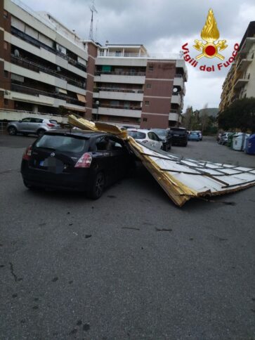 Il forte vento sta causando danni nella città pitagorica: tetti scoperchiati, alberi divelti, insegne pericolanti e auto danneggiate