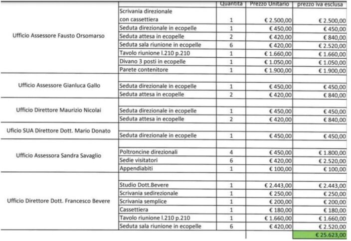 «In realtà, già il sindacato CSA-Cisal aveva anticipato che gli arredi – sottolineano – non erano andati integralmente agli uffici del dg Francesco Bevere ma anche in altri dipartimenti. Ed in effetti, il decreto rettificato riporta testualmente che i mobili sono “da destinare a vari dipartimenti e Strutture Regionali che ne avevano fatto richiesta, e precisamente il Dipartimento Tutela della Salute (PEC del 08/07/2020 a firma del dirigente Generale Bevere e successiva mail del 10/09/2020 della Segreteria Particolare del Presidente della Giunta Regionale), l’Ufficio dell’assessore Fausto Orsomarso (mail del 20/07/2020 a firma del Responsabile amministrativo della Struttura), il Dipartimento Programmazione Unitaria (PEC del 12/08/2020 a firma del Dirigente Generale dr Maurizio Nicolai), la Stazione Unica Appaltante (mail del 24/09/2020 a firma del Dirigente Generale Dott. Mario Donato), l’ufficio dell’assessore Sandra Savaglio (mail dell’ 08/10/2020 a firma dell’Assessora Savaglio) nonché all’ufficio dell’assessore Gianluca Gallo presso la sede di Cosenza, Palazzo degli Uffici, (all’esito di un sopralluogo della Struttura Tecnica Regionale)”».
