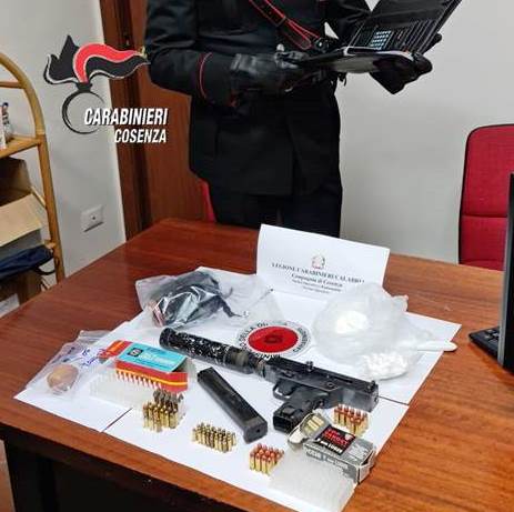 COSENZA Nell’ambito dei servizi di controllo del territorio predisposti dal Comando provinciale dei Carabinieri di Cosenza, i Carabinieri della Sezione operativa della Compagnia del capoluogo hanno eseguito una serie di ispezioni e perquisizioni in via degli Stadi, a conclusione delle quali hanno rinvenuto una pistola mitragliatrice pronta all’uso, un ordigno esplosivo, munizioni di vario calibro e sostanza stupefacente.