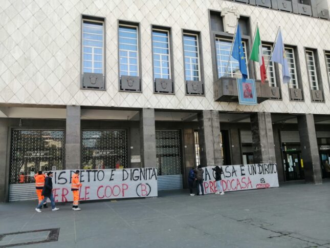 Mentre era in corso l’incontro nelle sale di Palazzo dei bruzi, fuori si è tenuta la protesta di alcuni dei 400 dipendenti delle Cooperative sociali di tipo B. Lavoratori e lavoratrici che da due mesi non ricevono lo stipendio. L’ultima mensilità risale al mese di dicembre 2020. «Stiamo vivendo un momento insopportabile – confessano alcuni lavoratori – da tre mesi non veniamo retribuiti nonostante la spesa relativa alle Cooperative di tipo B sia presente nel bilancio comunale. Stiamo pagando sulla nostra pelle i danni fatti da chi amministra la nostra città. Come manteniamo le nostre famiglie? Come possiamo fare la spesa per mangiare?».