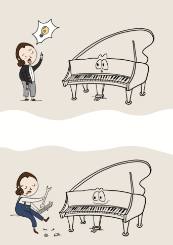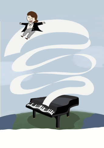 Uno stile minimale quello dell’illustratore Gianluca Gallo, unito ad una palette di colori pastello essenziale e poche righe di testo a corollario di tutto. Un’unione di immagini e parole, la cui dimensione narrativa si muove tra il reale e il surreale, come se raccontando la sua vita si raccontasse una favola. La figura di Rendano a livello visivo ad esempio è stilizzata, fumettistica e sempre un po’ “infantile”, quasi come se fosse il protagonista di un libro per bambini. E anche quando Rendano diventa adulto, ormai famoso musicista, la sua immagine resta sempre fedele al precoce talento musicale che prima di imparare a leggere e scrivere già riusciva a suonare il pianoforte come pochi altri. Il libro è quindi una sorta di favola reale, adatta a tutti, una narrazione in cui ci si può lasciare trascinare, sospesi in un piccolo universo poetico reso ancora più immaginifico dalla presenza di un Qr code, grazie al quale si potranno ascoltare le musiche composte dal maestro Rendano mentre si sfogliano le pagine, un’immersione totale nella storia di un artista incredibile.