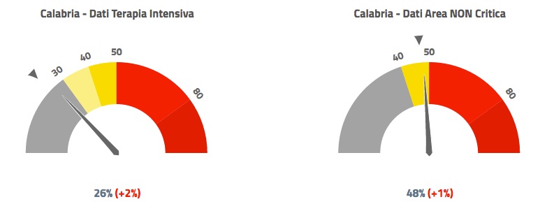 CATANZARO In controtendenza rispetto al dato nazionale, in Calabria si registra un evidente aumento della pressione del Covid 19 sugli ospedali, sia per quanto riguarda i ricoveri in area medica sia con riferimento ai ricoveri nelle terapie intensive. Lo evidenza anche l’ultimo monitoraggio dell’Agenas, aggiornato a oggi pomeriggio. Per quanto riguarda la Calabria, l’Agenzia per i servizi sanitari regionali infatti conferma la “saturazione” dei reparti di area non critica, con il costante superamento della soglia critica, e inoltre segnala un deciso incremento nelle rianimazioni: nel primo caso, il tasso di occupazione di posti letto attestato da Agenas oggi è del 48% (+1 rispetto a ieri, +8 rispetto alla soglia critica del 40%), per quanto riguarda le terapie intensive il tasso di occupazione è pari al 26% (-4 rispetto alla soglia critica del 30% ma +2 rispetto al dato di ieri). A livello nazionale Agenas attesta un’occupazione media del 44% in area medica (dato stabile rispetto a ieri) e del 40% nelle terapie intensive (dato in calo rispetto a ieri di un punto percentuale).