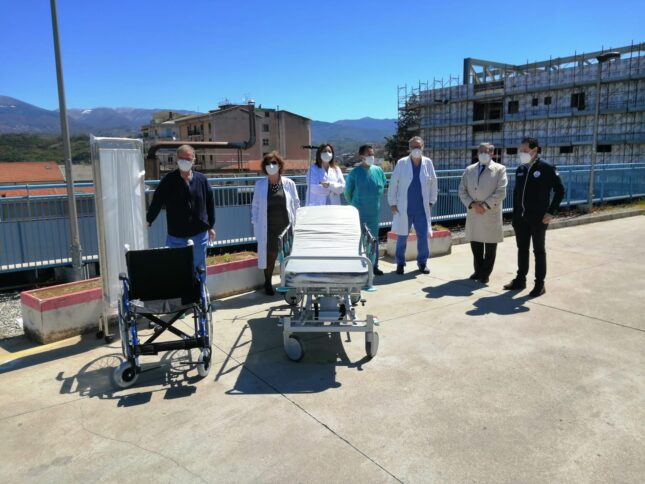 MONTALTO UFFUGO Cinque sedie a rotelle, due lettini e tre paravento sono stati donati dal Comune di Montalto Uffugo al pronto soccorso di Cosenza. La consegna dei presidi sanitari è avvenuta questa mattina, alle 12, davanti le porte del nosocomio bruzio, da giorni, alle prese con la continua emergenza dettata dall’aumento dei contagi. «Un gesto dovuto e doveroso verso chi è impegnato da un anno, in prima linea, nella lotta al virus», ha sottolineato il sindaco di Montalto, Pietro Caracciolo. «Un momento delicato per l’ospedale di Cosenza e non sembrano al momento bastare i presidi medicali e sanitari a disposizione di medici e personale».