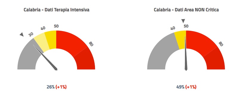 Hub calabresi dunque sotto pressione, e del resto lo conferma anche il trend dei ricoveri che emerge dal bollettino della Regione, con un balzo all’insù piuttosto evidente (e preoccupante) nelle ultime 24 ore: ieri i nuovi ricoveri sono stati nel complesso 18, e l’aumento ha riguardato sia le malattie infettive (+17, per 465 ricoveri complessivi), sia le terapie intensive (+1, per 39 ricoveri complessivi). A Catanzaro i ricoveri sono 113 (di cui 13 in terapia intensiva), a Cosenza 203 (di cui 17 in terapia intensiva), a Reggio Calabria 129 (di cui 9 in terapia intensiva), a Crotone 43, a Vibo Valentia 16. Trend in crescita che è poi sintetizzabile in un altro dato: a ieri i ricoveri complessivi in Calabria sono 504, una settimana fa erano 442 (in pratica, in media in Calabria ci sono 10 ricoveri al giorno). Trendi in (decisa) crescita che poi si riflette plasticamente nel monitoraggio dell’Agenas stilato alla luce delle soglie di saturazione individuate dal decreto del ministro della Salute del 30 aprile 2020: la soglia del 40% per l’area non critica (per la quale si intendono i posti letto di area medica afferenti alle specialità di malattie infettive, medicina generale e pneumologia), e la soglia del 30% per le terapie intensive: nel primo caso la Calabria è al 49% (di gran lunga superiore alla media nazionale, che è al 42%), nel secondo al 25% (qui, per fortuna, il dato calabrese è inferiore alla media nazionale, che è del 40%).