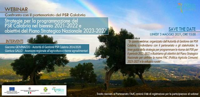 CATANZARO “Strategie per la programmazione del Psr Calabria nel biennio 2021-2022 e obiettivi del Piano strategico nazionale 2023-2027”. È questo il tema del webinar organizzato dall’Autorità di gestione del Programma di sviluppo rurale della Calabria, in programma per Lunedì 3 Maggio, a partire dalle ore 15. Nel corso dell’incontro, riservato alla partecipazione del partenariato e degli stakeholder, l’Assessore regionale all’Agricoltura Gianluca Gallo ed il direttore generale del Dipartimento Agricoltura, nonché Adg del Psr, Giacomo Giovinazzo, presenteranno le linee guida della strategia per programmare le risorse comunitarie nel settore agroalimentare per il periodo 2021-2022. Illustreranno inoltre gli obiettivi del Piano strategico nazionale per definire lo sviluppo rurale e la nuova Pac, la Politica agricola comune, relativamente al periodo 2023-2027. Obiettivo dichiarato: avviare un percorso di concertazione con i rappresentanti del mondo produttivo, istituzionale e della società civile, al fine di individuare una strategia innovativa, efficiente e condivisa nella gestione delle risorse europee in ambito agricolo.
