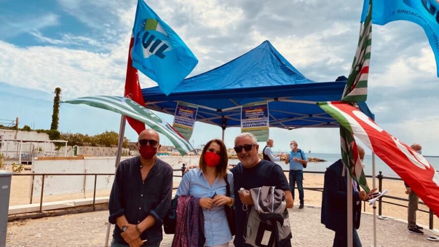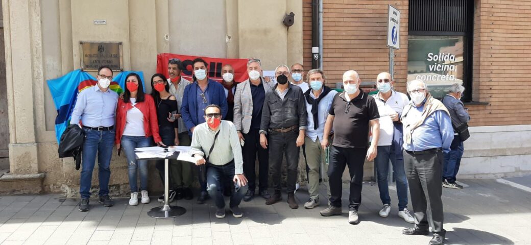 CATANZARO Manifestazione unitaria di Cgil, Cisl e Uil nelle principali piazze dell’area centrale della Calabria per dare seguito alle azioni a sostegno dell’iniziativa dei cittadini europei (Ice) “Tutti hanno diritto alla protezione da Covid: Nessun profitto sulla pandemia” con la sottoscrizione della relativa Petizione, che in Italia è promossa da oltre cento associazioni, per ottenere la sospensione temporanea dei brevetti su vaccini e farmaci anti-Covid.