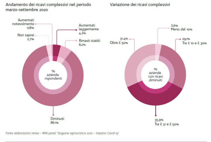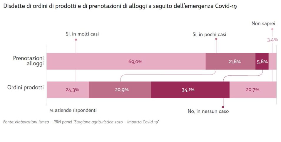 L’azzeramento di prenotazioni dei soggiorni e dei ricevimenti – questi ancora fermi al palo fino al 15 giugno – hanno comportato l’annichilimento della capacità di generare reddito e conseguentemente minato alle basi la stessa tenuta economica delle aziende agrituristiche. Solo la centralità della componente agricola si è rivelata elemento strategico ma soprattutto fondamentale per la sopravvivenza delle imprese che operano in questo segmento produttivo.