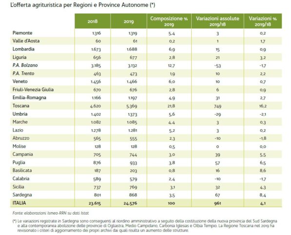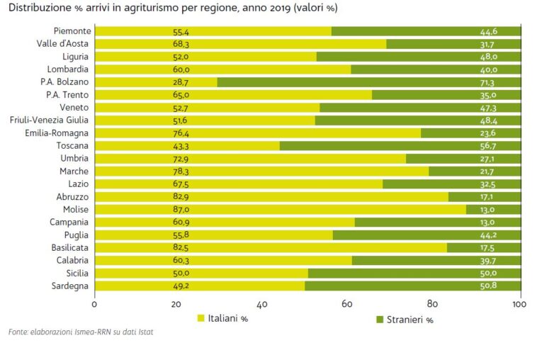 Secondo i dati dell’Istat rielaborati da Ismea, prima della pandemia il flusso di turisti in queste strutture era rilevante. In particolare nel 2019, il totale degli arrivi sono stati 15.093 con un numero di presenze complessive in quell’anno pari a 67.674.