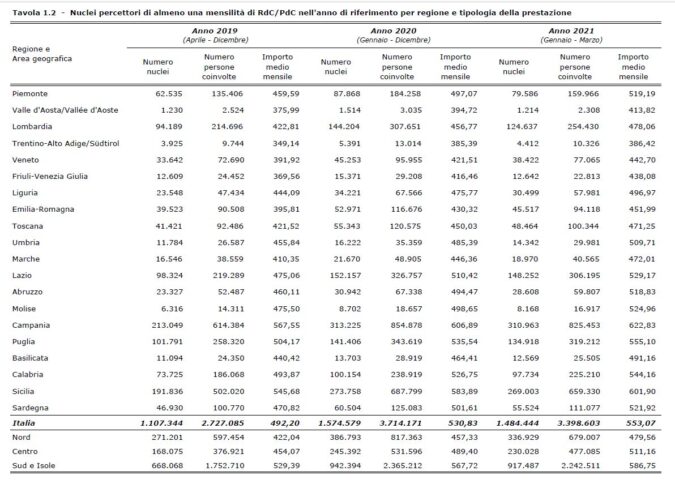Per comprendere la dimensione del disagio economico diffuso tra le famiglie calabresi a seguito della pandemia vengono in soccorso anche i numeri forniti dall’Osservatorio statistico dell’Inps. Leggendo il report trimestrale pubblicato ad aprile scorso, emerge infatti che i percettori di almeno una mensilità di Reddito di cittadinanza (Rdc) o Pensione di cittadinanza (Pdc) sono enormemente cresciuti in Calabria: passando da 73.725 nuclei del trimestre aprile dicembre del 2019 a 97.734 dei primi tre mesi del 2021. Quasi un terzo in più (esattamente il 32,6%).