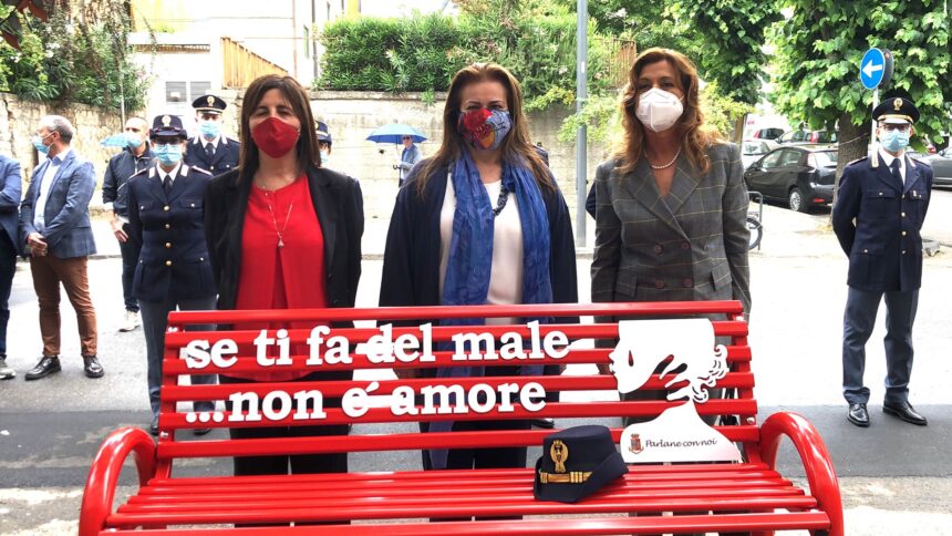 COSENZA Questa mattina alle ore 10:30, nello spazio antistante l’ingresso della Questura di Cosenza, le massime cariche istituzionali della provincia di Cosenza, il Questore Giovanna Petrocca, il prefetto Cinzia Guercio e il sostituto procuratore Marisa Manzini hanno inaugurato una “panchina rossa”, contro la violenza di genere ed in particolare contro la violenza sulle donne.