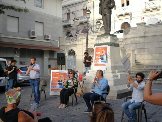 Su Corso Garibaldi, poco prima dello svincolo per Piazza Camagna, a bordo strada c’è un uomo che suona la fisarmonica. Gli altoparlanti coprono la melodia mentre danno “I cento passi” dei Modena City Ramblers. La piazza (politica) continua – e ritorna, grazie al progressivo allentarsi delle restrizioni – ad essere la cosa più vicina possibile al paese reale. Ma bisogna prestare attenzione a ogni singola voce. A ogni singola melodia, onde evitare di accavallarsi. La competizione elettorale calabrese è un po’ questo: un accavallarsi di voci. Quella di Luigi de Magistris promette “rottura” col sistema. «Lavoreremo con molta attenzione affinché i nostri candidati siano persone credibili. Ci saranno portatori di idee, di cuori e di teste. Sarà una squadra di storie belle di cui la Calabria è ricca. Non è il progetto dell’Io, ma del Noi».