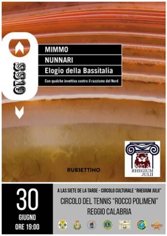 Sarà il giornalista e saggista Mimmo Nunnari con il suo ultimo libro Elogio della Bassitalia, con qualche invettiva contro il razzismo del Nord, editore Rubbettino, il prossimo ospite del calendario di giugno predisposto dal Rhegium Julii che si terrà mercoledì 30, alle ore 19, presso l’Arena del Circolo del tennis “Rocco Polimeni”.La serata è stata organizzata nell’ambito del programma denominato A LAS SIETE DE LA TARDE (Alle sette della sera), un ciclo di 6 incontri serali che anticiperanno la nuova edizione dei Caffè letterari 2021. L’ospite, ha esordito come giornalista scrivendo per il quotidiano Gazzetta del Sud; poi ha proseguito la sua carriera con la RAI dove ha ricoperto incarichi di notevole prestigio sia nella rete regionale che in quella nazionale. Ha scritto numerosi saggi approfondendo aspetti sociali e culturali del Mezzogiorno e del Mediterraneo.