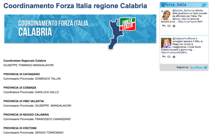 Il “giallo” dei coordinatori. Sul sito di Forza Italia riappare Tallini