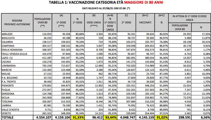 CATANZARO Secondo l’ultimo report settimanale del commissario per l’emergenza Covid 19, aggiornato a ieri, la Calabria continua a registrare lentezze nella campagna vaccinale, occupando in genere le posizioni di coda della classifica nazionale. A partire valla fascia di età over 80: qui mancano all’appello, come prima dose, oltre 28mila calabresi per una percentuale del 20,31% (peggio solo la Sicilia con il 21,02%), stesso trend per quanto riguarda la fascia di età 70-79 (in attesa della prima dose sono oltre 33mila calabresi, per una percentuale pari al 17,79%, anche qui o peggio fa solo la Sicilia con il 19,71%), Quanto alla fascia d’età 60-69, la Calabria qui è quart’ultima visto che ancora devono fare la prima dose oltre 49mila calabresi (20%, peggio fanno la solita Sicli, la Valle d’asta dil Friuli). Male anche la campagna vaccinale per la fascia d’età 50-59% (oltre 81mila i calabresi in attesa della prima dose, pari al 28,30%, peggio Sicilia e Friuli). Quanto al personale scolastico, nemmeno qui per la Calabria buone nuove: secondo il report del commissario governativo anti Covid 19, all’appello, come prima dose, in Calabria mancano 14.348 operatori scolastici, pari al 30,96% (sono messi peggio comunque Sicilia, Provincia autonoma di Bolzano, Liguria e Sardegna, la media nazionale è il 14,87%).