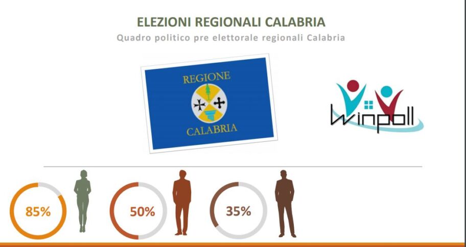 CATANZARO Poco più di due punti di scarto separerebbero le due principali coalizioni in corsa per le Regionali in Calabria. Ma ad essere in vantaggio con il 39,2% dei consensi il centrodestra che sostiene la corsa di Roberto Occhiuto a seguire il centrosinistra capeggiato da Amalia Bruni con il 37,1%. È quanto emerge dall’ultimo sondaggio realizzato da Winpoll e commissionato da “Scenari politici” sulle intenzioni di voto di coalizioni previste in Calabria in autunno.