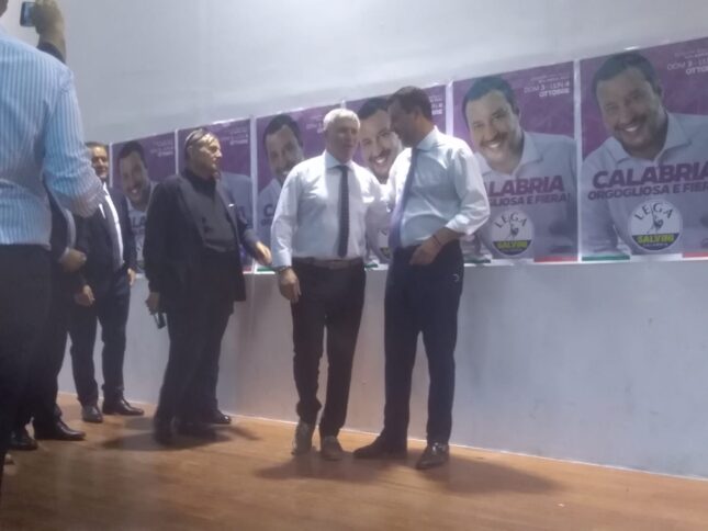 Bisogna svegliare i cuori dei calabresi, poi tra 5 anni ci giudicheranno, se saremo stati bravi ci rivoteranno altrimenti ci manderanno a casa. Dobbiamo fare in modo – ha aggiunto Salvini – che i calabresi il 3 e il 4 ottobre non restino a casa, perché questo significherebbe dare fiato a quei tromboni che dicono che tanto non cambierà nulla, che tanto c’è la ‘ndrangheta. La ‘ndrangheta è merda e la Lega la prende a calci nel sedere, ma non deve diventare una scusa per chi non ha voglia di lavorare. Ringrazio quanti hanno deciso di mettersi in gioco per questa terra, fa loro onore. È giusta la sana competizione ma non dividiamoci al nostro interno. Noi – ha sostenuto il leader della Lega – siamo qui per dare voce alla Calabria bella, pulita, libera, onesta, che chiede lavoro, non chiede assistenza o beneficenza: tra i nostri primi obiettivi ci sarà quello di ridare la sanità ai calabresi. Io tornerò almeno altre due volte». Alla presentazione dei candidati della Lega al Consiglio regionale ha partecipato anche il candidato del centrodestra alla presidenza della Regione, Roberto Occhiuto, capogruppo di Forza Italia alla Camera: «Non dobbiamo farci condizionare dai sondaggi, che – ha spiegato Occhiuto – sono voti di carta, quindi da qui al giorno del voto non dobbiamo lesinare l’impegno, sapendo comunque che noi non vinciamo il 3 e 4 ottobre ma dopo se governeremo bene la Calabria». Sul palco, a seguire gli interventi, conclusi da Salvini, tutti i candidati della Lega al Consiglio regionale, a partire dagli uscenti Tilde Minasi, Filippo Mancuso, Pietro Molinaro e Pietro Raso.