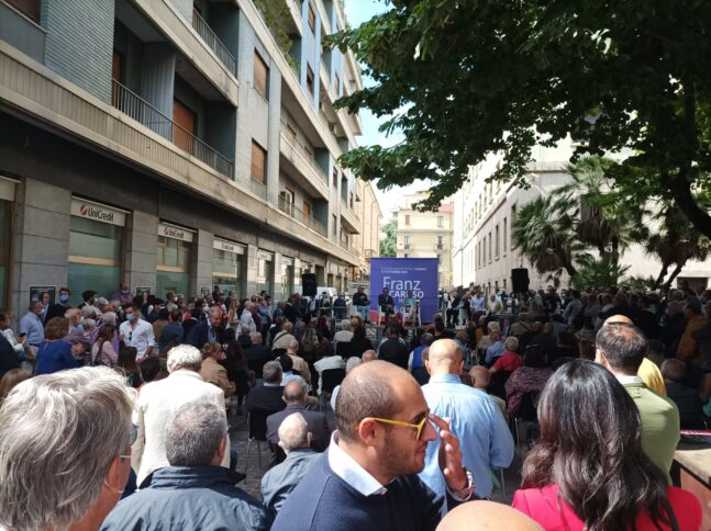 COSENZA Occhi lucidi e sguardo rivolto ai tanti fedelissimi presenti, agli amici di sempre e ai nuovi elettori. Franz Caruso, candidato a sindaco di Cosenza con il centrosinistra, sceglie la centralissima piazza XI settembre per aprire ufficialmente la campagna elettorale. «Sono emozionato – sostiene Caruso – non pensavo di vedere tanta gente. E’ un bel segnale, l’esempio lampante dell’interesse dei cittadini nei confronti del programma Cosenza 2050 che sarà il faro della nostra avventura elettorale». Presenti in prima fila anche tanti sindaci: Roberto Perrotta primo cittadino di Paola, Vincenzo Tamburi sindaco di San Basile, Gianni Papasso di Cassano allo Ionio e Alessandro Porco sindaco di Aprigliano.
