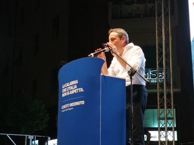 Mario Occhiuto ha ricordato l’ultimo comizio di Roberto a Cosenza. Il candidato del centrodestra alle Regionali, invece, ricorda il suo primo comizio appena 18enne «proprio a piazza Kennedy», «oggi torno qui e vi parlo da candidato alla Regione e capogruppo alla Camera di Forza Italia». Anche Roberto Occhiuto non può fare a meno di ribadire l’amore indissolubile per Cosenza e con lo sguardo fiero, si rivolge subito al fratello Mario: «Poteva esserci lui a parlare da candidato sul palco, mi impegnerò a fare in Calabria quello che lui ha fatto per la città di Cosenza». Il messaggio rivolto a Francesco Caruso e agli elettori è un invito a far di tutto per evitare il ballottaggio: «Francesco Caruso vincerà le elezioni, al primo turno o al ballottaggio. In ogni caso sarò a Cosenza a sostenerlo». La chiosa è dedicata al ricordo di Jole Santelli, più volte menzionata dai vari relatori nel corso della serata da Giuseppe Mangialavori a Nino Spirlì. «Se dovessi riuscire a dimostrare che la Calabria è una Regione migliore – conclude Occhiuto – lo farò solo dopo Jole Santelli, la prima a credere nella Regione capace di esprimere una classe dirigente di qualità». «La Calabria che l’Italia non si aspetta».