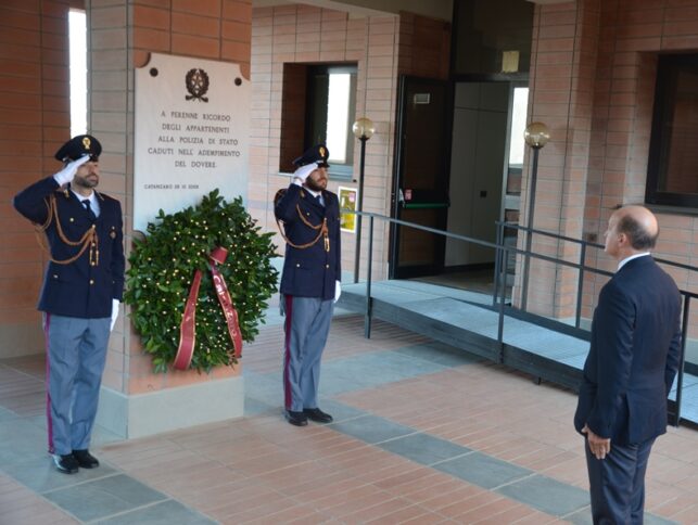 CATANZARO Nel giorno del suo insediamento a Questore della provincia di Catanzaro, il dott. Maurizio Agricola, come primo atto ha deposto con commozione una corona di alloro alla lapide posta in ricordo dei caduti della Polizia di Stato, nel cortile del Centro Polifunzionale della Polizia di Stato.