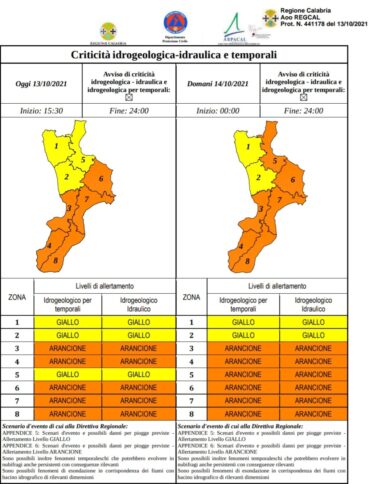 Per la giornata del 14 ottobre attenzionata anche la Sicilia. A Catanzaro chiuse scuole e impianti sportivi