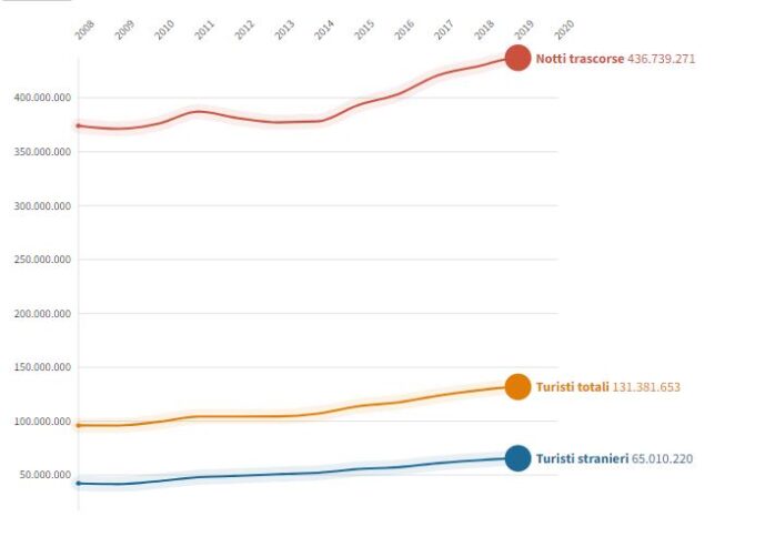 Rielaborando i dati sui flussi turistici che vanno dal 2007 al 2019 – quest’ultimo anno scelto di proposito perché pre-pandemia – emerge una pressoché costante crescita nel tempo. Così si è passati da 1.570.419 arrivi e 8.739.171 presenze del primo anno preso in esame a 1.896.326 arrivi e 9.509.423 presenze del 2019. Numeri che tradotti in percentuali indicano una crescita di oltre 20,7 punti in termini di arrivi e di 8,8 punti per presenze. Dati incoraggianti ma che nel contempo fotografano un quadro che dimostra, come nonostante anni di investimenti se gli effetti ci sono stati, non sono ancora sufficienti a risolvere le principali criticità del settore: alta stagionalità, poca attrazione del turismo straniero (soprattutto quello capace di generare alta spesa turistica) e un basso tasso di occupazione dei posti letto. Aspetti che incidono ovviamente sulla capacità delle imprese di innalzare la redditività aziendale e generare conseguentemente occupazione.