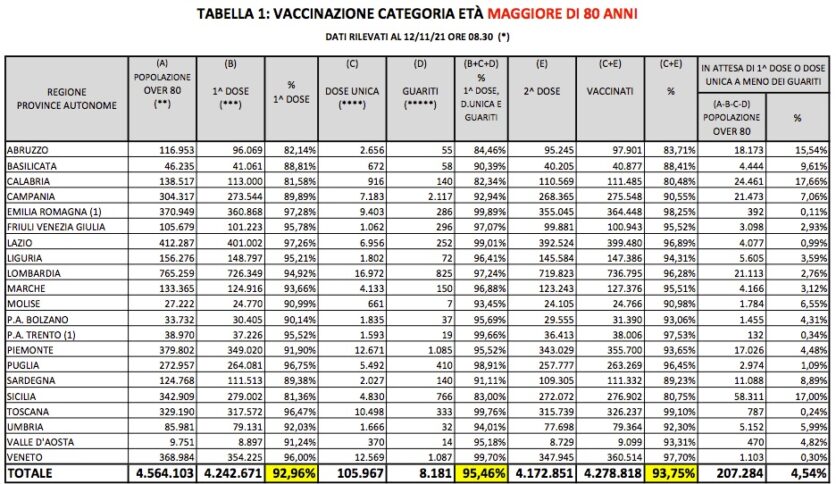 Ecco comunque i dati. In linea generale, la Calabria è 12esima in Italia nel rapporto tra dosi di vaccino consegnate e dosi somministrate (rispettivamente oltre 2,9 milioni e 2,6 milioni, per il 91,4%, la media nazionale è il 98,1%). Scorrendo l’ultimo report settimanale del commissario Covid 19, aggiornato a ieri, senza nemmeno la prima dose ci sono in Calabria oltre 24mila over 80 (17,66%, media nazionale è il 4,54%), circa 25mila over 70 (13,38%, la media nazionale è il 7,26), oltre 47mila over 50 (16,61%, media nazionale è il 12,38%) e circa 48mila over 30 (21,83%, media nazionale è il 15,59%). In tutte queste fasce d’età le “scoperture” calabresi sono in percentuale le più alte d’Italia. Ma anche lo start della terza dose non è stato a pieno regime, almeno in raffronto al dato generale del Paese: sempre dai report del commissario, in Calabria hanno fatto l’aggiuntiva oltre 14mila over 80 (10,28%, media nazionale è il 31,73%), 6.500 over 70 (3,59%, media nazionale è il 5,77%), oltre 8mila over 60 (3,31%, media nazionale 4,49%), oltre 3.500 over 50 (1,25%, media nazionale è il 2,42%), oltre 2mila over 40 (0,79%, media nazionale 1,70%) e infine circa 1.500 over 30 (0,64%, media nazionale è l’1,54%).