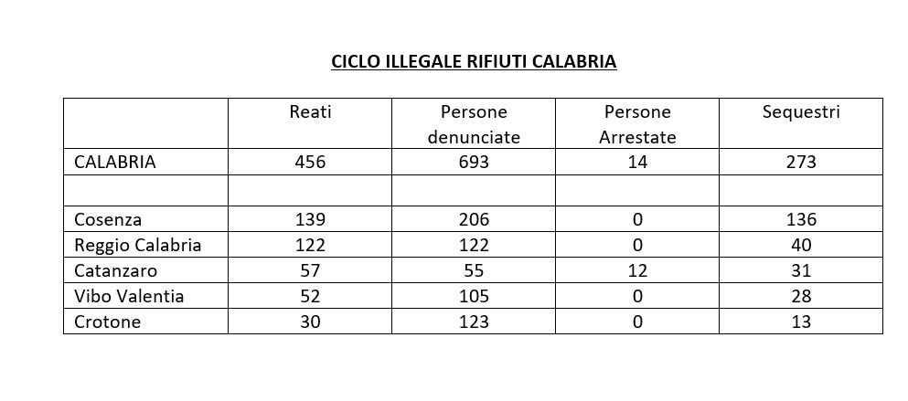 Per quanto riguarda il ciclo illegale dei rifiuti, invece, la Calabria è all’8° posto con 456 reati. Nella top20 delle province italiane, Cosenza è all’8° posto, seguita da Reggio Calabria.
