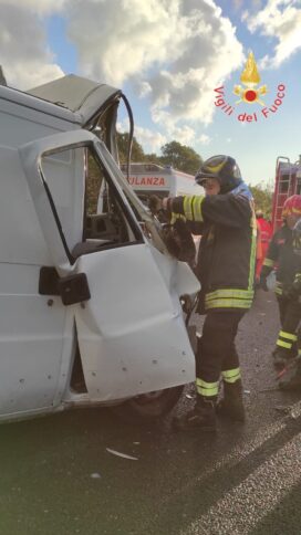 Due i mezzi coinvolti, un furgone ed un automezzo cassonato adibito al trasporto di rifiuti solidi urbani. A bordo del furgone due passeggeri di cui uno deceduto sul colpo. L’altro occupante, estratto dalle lamiere, è stato affidato al personale sanitario del Suem118 per le cure del caso e successivo trasporto presso struttura ospedaliera.