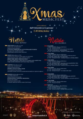 CATANZARO Nasce un nuovo festival per Catanzaro, un progetto che parte oggi ma con uno sguardo al futuro per costruire un marchio particolare che possa costituire un’attrazione forte per la città e il comprensorio. Chiara Giordano, appassionata ideatrice e direttrice del prestigioso Armonie d’Arte Festival, ha lanciato la prima edizione di XMas Music Fest, dedicato esclusivamente alla musica natalizia, quella locale, nazionale ed internazionale. Un progetto che arriverà ad esprimere tutto il proprio potenziale almeno in un triennio, e il cui obiettivo è quello di fare arrivare a Catanzaro un fiume di musicisti da tutto il mondo e con questi la musica natalizia o di fine anno tipiche delle loro terre, dei loro Paesi : un’invasione buona, che nel tempo potrà prevedere anche il food e l’artigianato. Un Festival gioioso, realizzato dalla Fondazione Armonie d’Arte, sostenuto con lungimiranza e interamente dal Comune di Catanzaro nell’ambito del programma natalizio “Sarà tre volte Natale”, accolto dal Sindaco e da tutta la sua giunta con entusiasmo perché non ci sono altri festival in Italia dedicati al Natale, e quindi la sua forte connotazione artistica e culturale potrà far crescere nel tempo un’opportunità importante per il capoluogo, ad alto impatto mediatico, e non di meno di indotto socio economico, diventando un punto di riferimento per il turismo invernale, al pari di altre città italiane con eventi particolari in questo periodo.