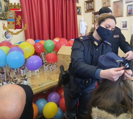 Iniziativa in collaborazione con la procura. Tra i doni zainetti e cappellini col logo della polizia di Stato