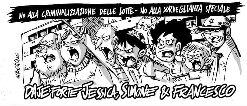 «Abbiamo lottato per la sanità e ora siamo destinatari di una misura fascista. Il fumettista è al fianco della parte sana della città.»