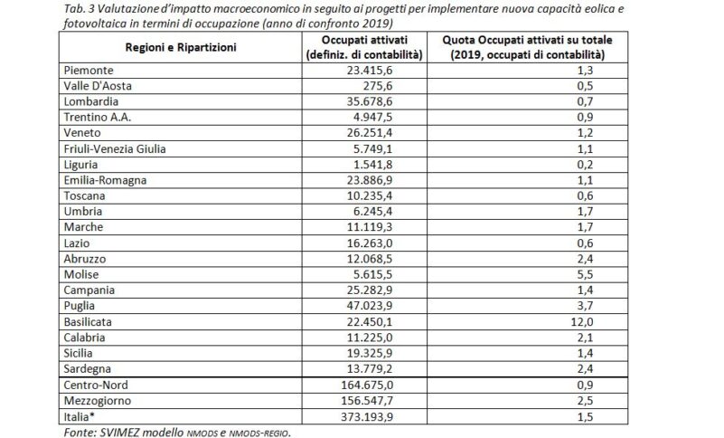 E le ricadute sull’occupazione complessiva italiana sarebbero decisamente rilevanti: 376mila occupati in più in questo periodo preso in esame dalla ricerca. Ben 156mila sul territorio meridionale della Penisola.