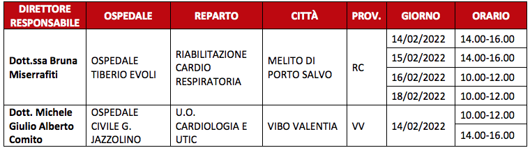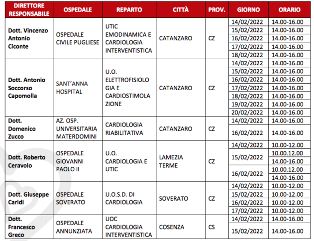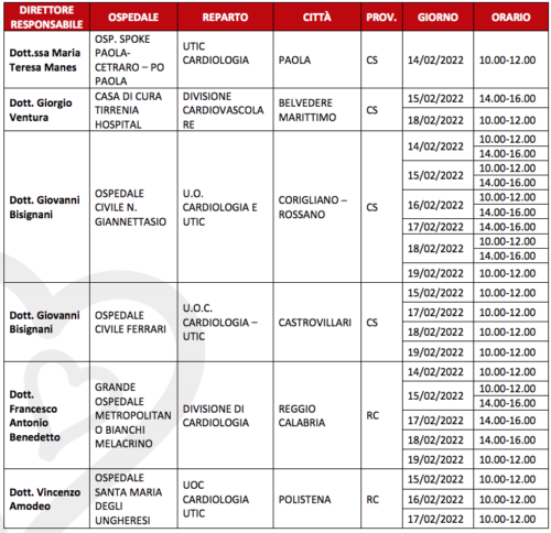 “La prevenzione è dunque importantissima – sottolinea Roberto Caporale – Presidente Regionale Anmco Calabria, Uoc Cardiologia Interventistica – Azienda Ospedaliera di Cosenza – Presidio Ospedaliero dell’Annunziata di Cosenza – e va attuata il più precocemente possibile. L’iniziativa di Cardiologie Aperte, in questo momento di emergenza sanitaria, è in tal senso una grande occasione che i cardiologi Anmco desiderano offrire gratuitamente a tutti i cittadini che lo desiderano e rappresenta un caposaldo della prevenzione cardiovascolare che la nostra Associazione porta avanti da oltre 16 anni”. La Campagna per il Tuo cuore 2022 – conclude la nota – sarà attiva anche sui social con l’hashtag #ascoltiamoiltuocuore e #cardiologieaperte».