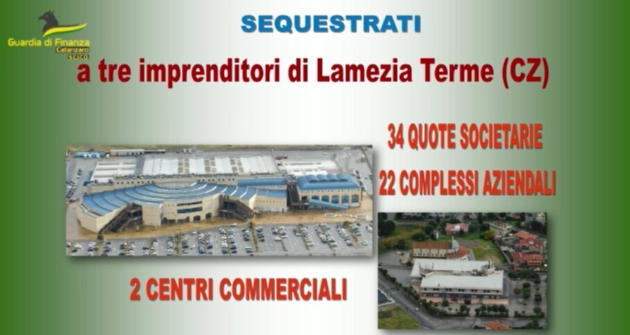 CATANZARO La Guardia di Finanza, coordinata dalla Dda di Catanzaro, sta eseguendo un decreto di sequestro di beni per un valore di oltre 800 milioni ai fratelli Francesco, Pasqualino e Marcello Perri, imprenditori di Lamezia Terme del settore della grande distribuzione e proprietari del “Due Mari”, uno dei più grandi centri commerciali della Calabria. Il sequestro di prevenzione ha riguardato: 22 complessi aziendali, comprendenti: un centro commerciale tra i più grandi della Calabria; 19 ipermercati; attività di commercio di autoveicoli e di rivendita di motocicli e ciclomotori. E ancora, attività operanti nei settori: costruzione di edifici residenziali e non residenziali; intermediazione finanziaria; recupero e riciclaggio di cascami e rottami metallici; produzione di gelati; gestione di impianti polivalenti; locazioni immobiliari; partecipazioni in 34 società, attive nei settori della grande distribuzione alimentare, rivendita di autovetture, ottica, commercio al dettaglio di generi alimentari, ristorazione, immobiliare, ed anche le quote di partecipazione nella squadra di calcio “Vigor Lamezia” e nella squadra di volley “Pallavolo Lamezia”. E infine, 26 fabbricati e 2 ville di lusso; 42 terreni; 19 autoveicoli (tra i quali una Ferrari); 4 motoveicoli di lusso; una ditta individuale, operante nel settore della ristorazione; tutti i rapporti bancari intestati e/o riconducibili ai proposti e ai loro familiari.