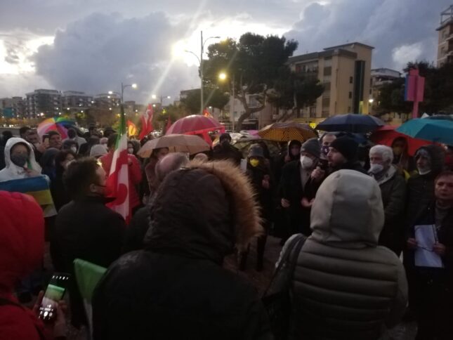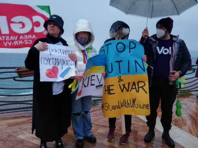 Un centinaio di persone, tra cui molti appartenenti alla comunità ucraina, ha sfidato la pioggia per partecipare oggi pomeriggio a Catanzaro a una manifestazione per dire no alla guerra scatenata dalla Russia. Il presidio, che si è tenuto sul lungomare del quartiere Lido del capoluogo calabrese, è stato promosso dall’Anpi e ha visto la presenza di numerose sigle come la Cgil, l’Usb, i partiti dell’estrema sinistra, Libera, Cambiavento, Dema.